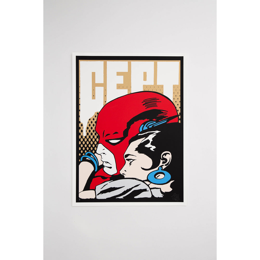 Decorating our streets since 1986, CEPT is one of the UK’s most highly respected and pioneering graffiti artists. His unique style combines old school graffiti, psychedelia and pop art in a sci-fi inspired explosion of exaggerated colour and cosmic forms. Under the influence of music, CEPT’s murals employ a strong element of visual sampling – deftly borrowing imagery and ideas from comic books, pop art, song lyrics, art history and graffiti wherever needed. CEPT routinely takes titles from cult songs by bands like Joy Division and The Smiths, and assigns them new meaning as titles for his murals.