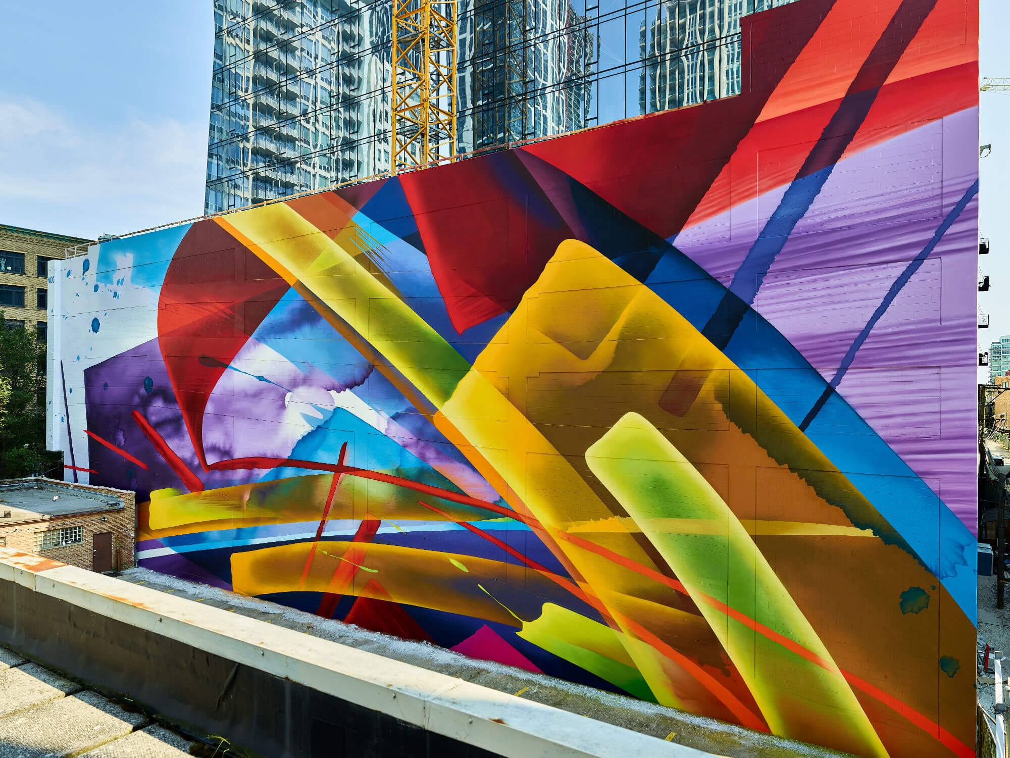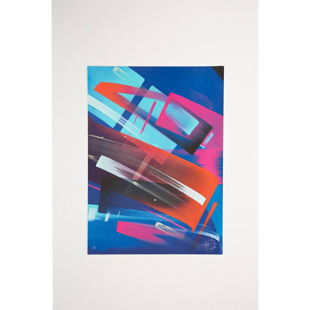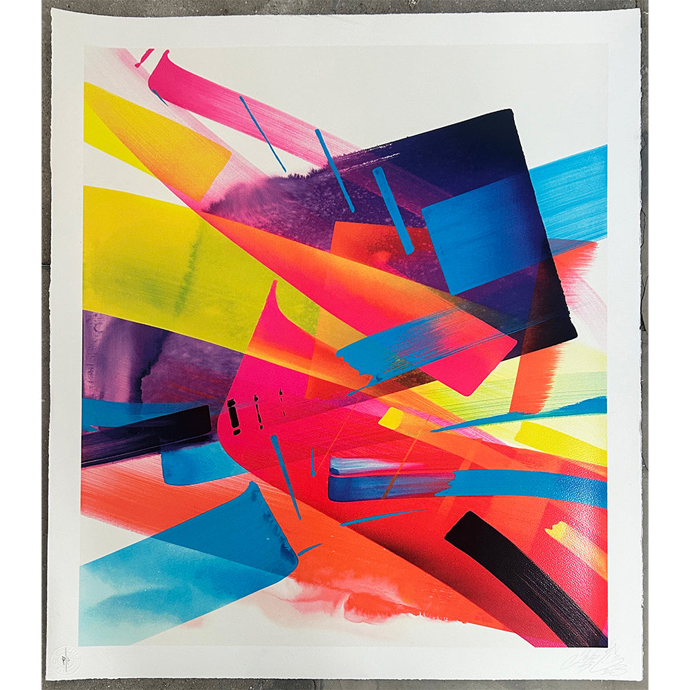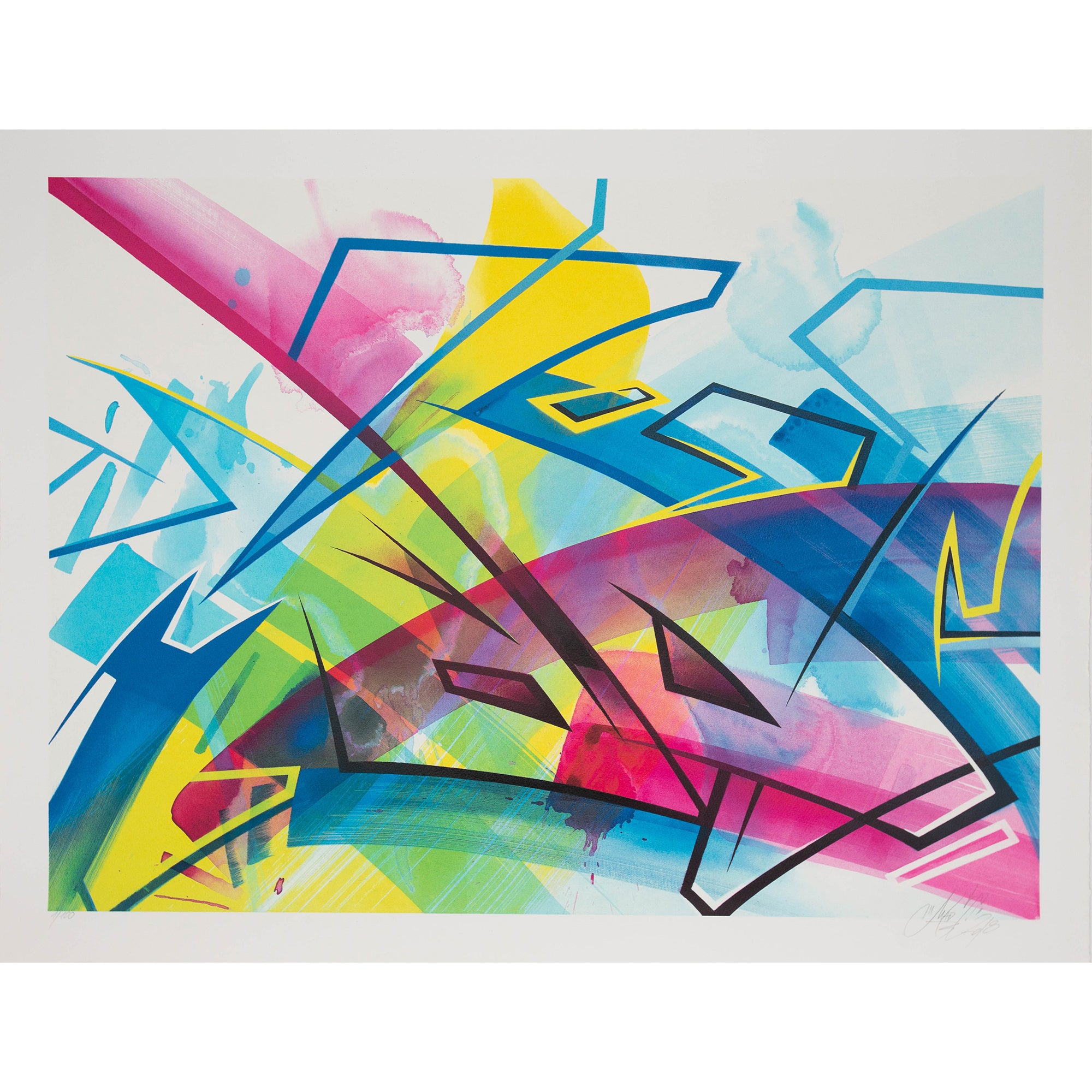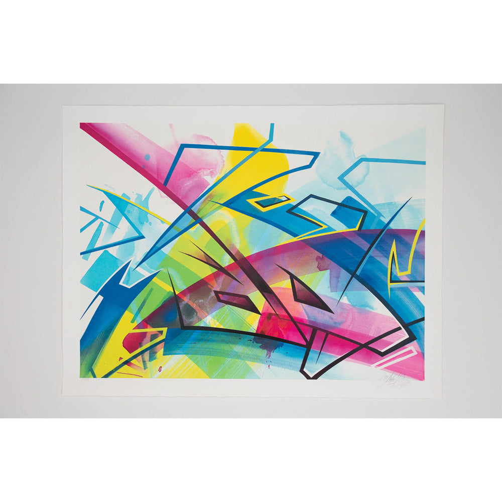 MadC was born as Claudia Walde in Germany in the 1980s. Throughout 25 years of constant engagement with art, in the streets as well as in galleries, she worked her way up from a teenager starting off with a spray can to one of the world’s top urban contemporary artists. MadC’s style has its roots in graffiti art, resulting in vividly colored, dynamic calligraphy and transparency where all layers shine through and thereby capture the energy of painting on a massive scale in the street, without using a direct graffiti language. Her unique use of color, composition and layering are perfectly paired with the spontaneously and fast painted lines of the calligrapher.