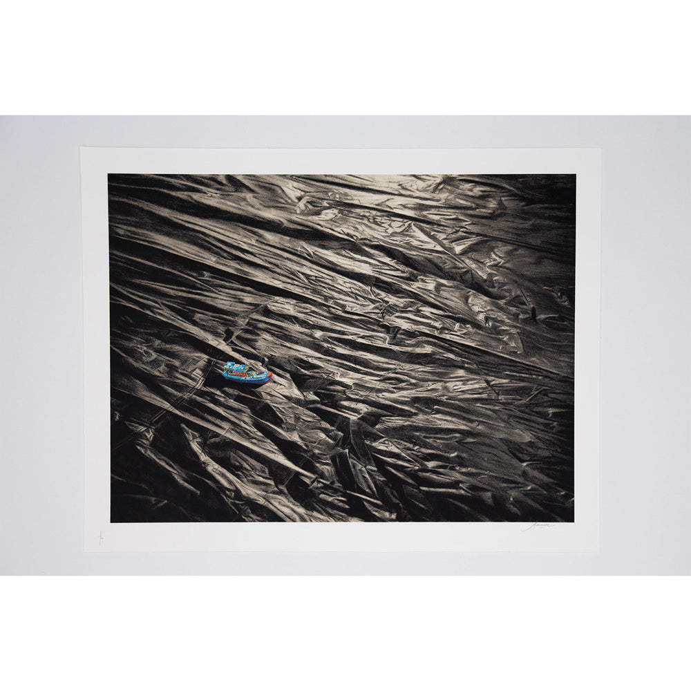 Duo artists Murmure (Paul Ressencourt and Simon Roche) met at the Fine Arts school, one being originally specialized in creation, graphic arts and urban arts, the other one in arts and technique. Intervening together in public space since 2010, Murmure explore many themes in a playful, oneiric or poetic way : childhood, homelessness, consumer society, new technologies and even the environment are among their favorite subjects. Although Murmure’s works are mostly visible in the street, it is the studio work that is at the center of each project. Working with four hands, they draw mainly with graphite pencil to obtain a profound depth in the dark shades and a realistic rendering.