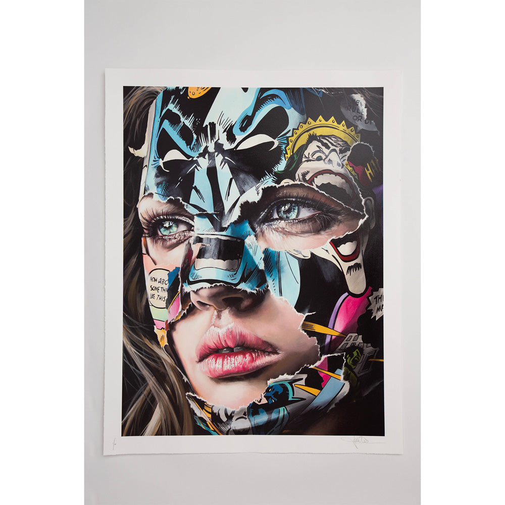 Sandra Chevrier (b-1983) is a Canadian contemporary / pop urban artist, known for her captivating portraits of women from The Cages series. Sandra produces work ranging over vastly fluctuating emotional enigmas and concepts that have set the standard of our modern communication, exposing the limitations of our world; our self-imposed expectations and the cages we have allowed to bar us from the fullness of life’s experience. With work demanding to be dissected beyond its surface value, Chevrier's portraits are quite literally torn between the fantastical heroics and iconography of comic books and the harsher underlying tragedy of oppressed female identity and the exposed superficial illusion it conveys.